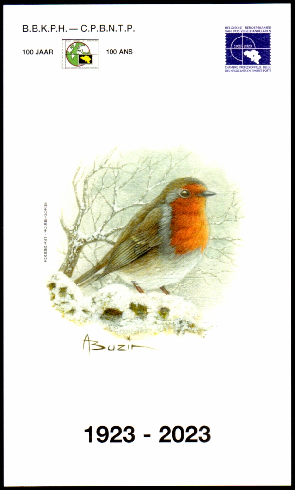 De Belgische Beroepskamer van Postzegelhandelaren, in samenwerking met de vereniging FNIP, heeft op "Antverpia 2013" een niet aangenomen ontwerp aangeboden van A. Buzin "ijsvogel". Uitgifteprijs € 10,00. Ft.: 140x105 mm. Lors de "Antverpia 2013" la Chambre Professionelle Belge des Négociants en Timbres-poste, en collaboration avec FNIP, a presenté un projet non adopté de A. Buzin "Martin-pêcheur". Prix d'émission: € 10,00.